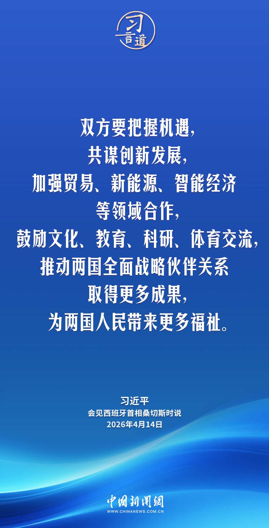 今日邦家主席习远仄正在北京黎民年夜礼堂会晤去华停止正式拜候的西班牙尾相桑切斯。习远仄指出——